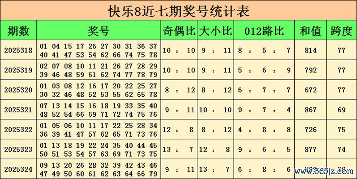 福彩忻悦8上期开奖号码:09 13 20 26 28 32 39 42 43 46 47 49 50 60 61 62 63 64 66 79,其中奖号奇偶比为9:11,大小比为13:7,跨度为70。